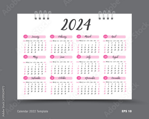 Calendar 2024 template vector , 12 months yearly calendar set in