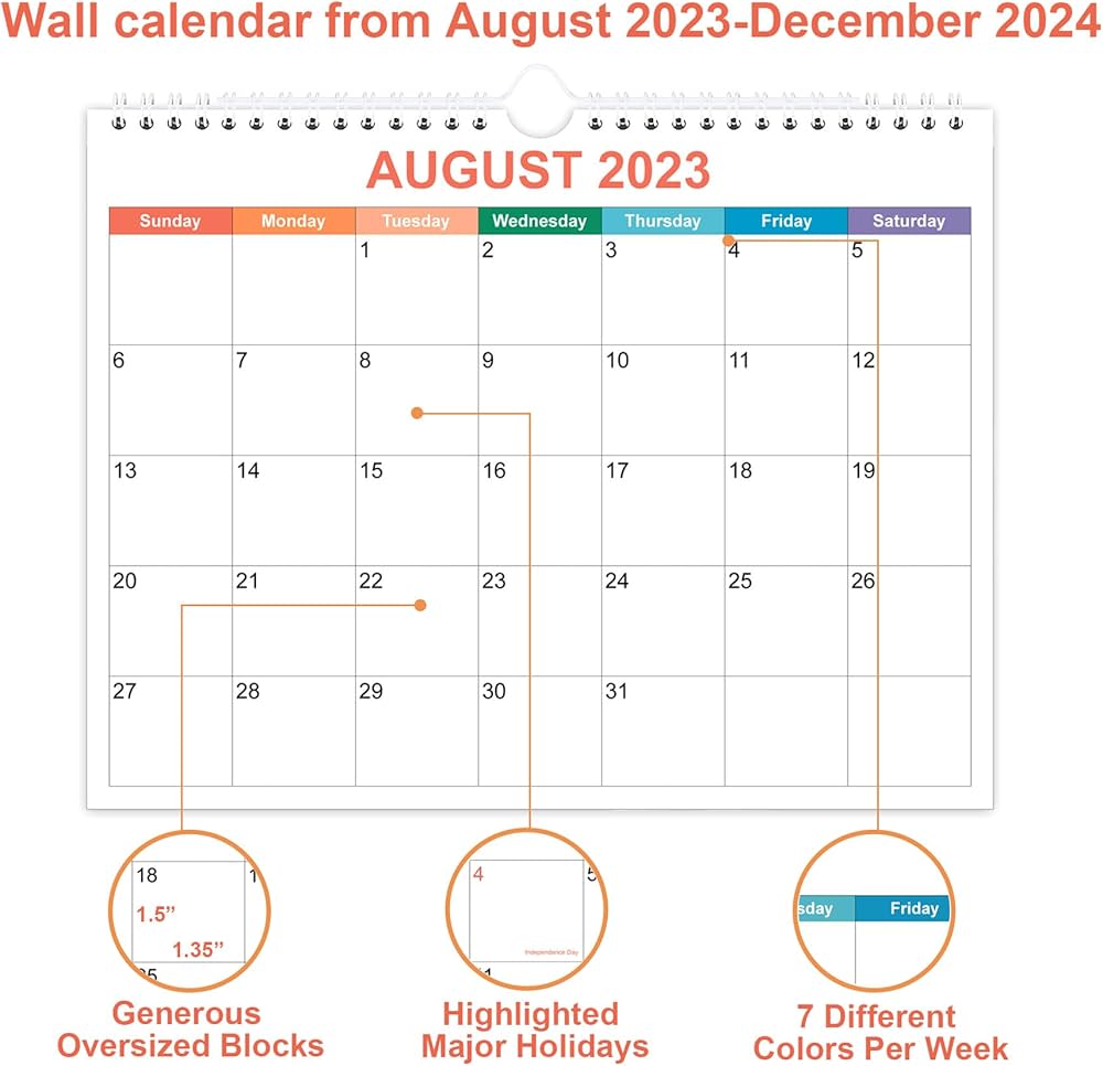 Amazon.com: Calendario de pared 2023 2024, calendario 2023 2024 de