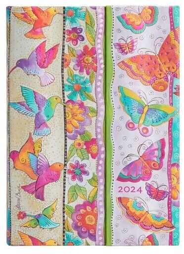 Paperblanks 12 Monatskalender 2024 Kolibri und Schmetterlinge Midi